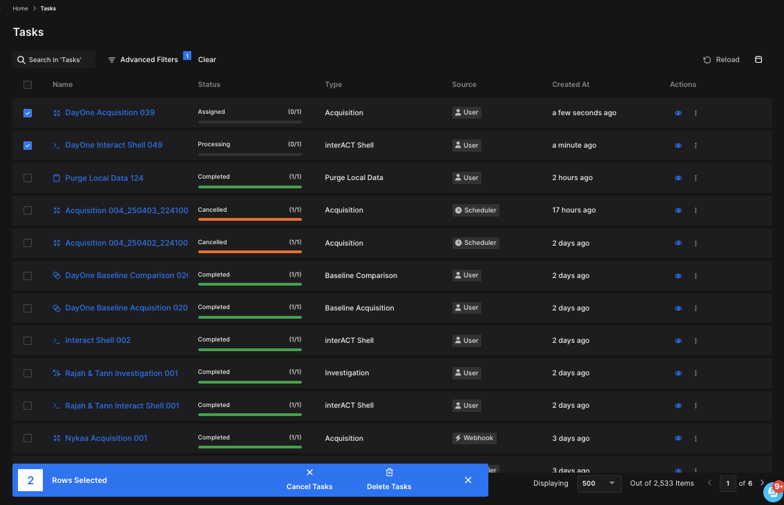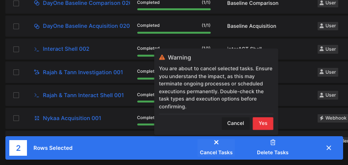 To safeguard against unintentional bulk operations, XDR Forensics now includes an automatic confirmation prompt when tasking operations affect 70% or more of your assets.