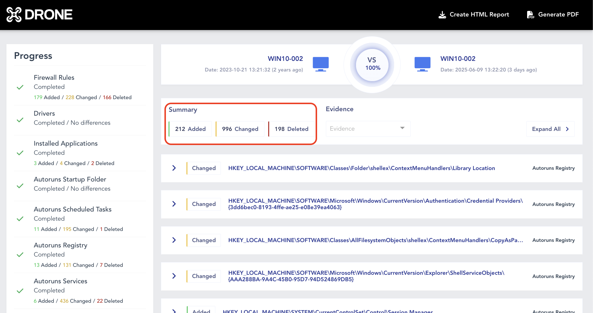 • Once the task is complete, review the results DRONE report.