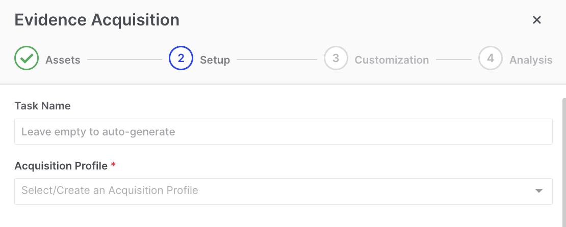 1. In the second stage, select the type of task you want to perform on the Off-Network asset. You can choose between “Acquisition” and “Hunt/Triage”.