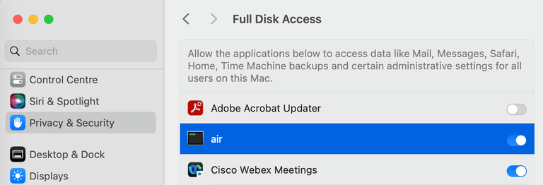 Section titled “Granting Full Disk Access for Responder on macOS”